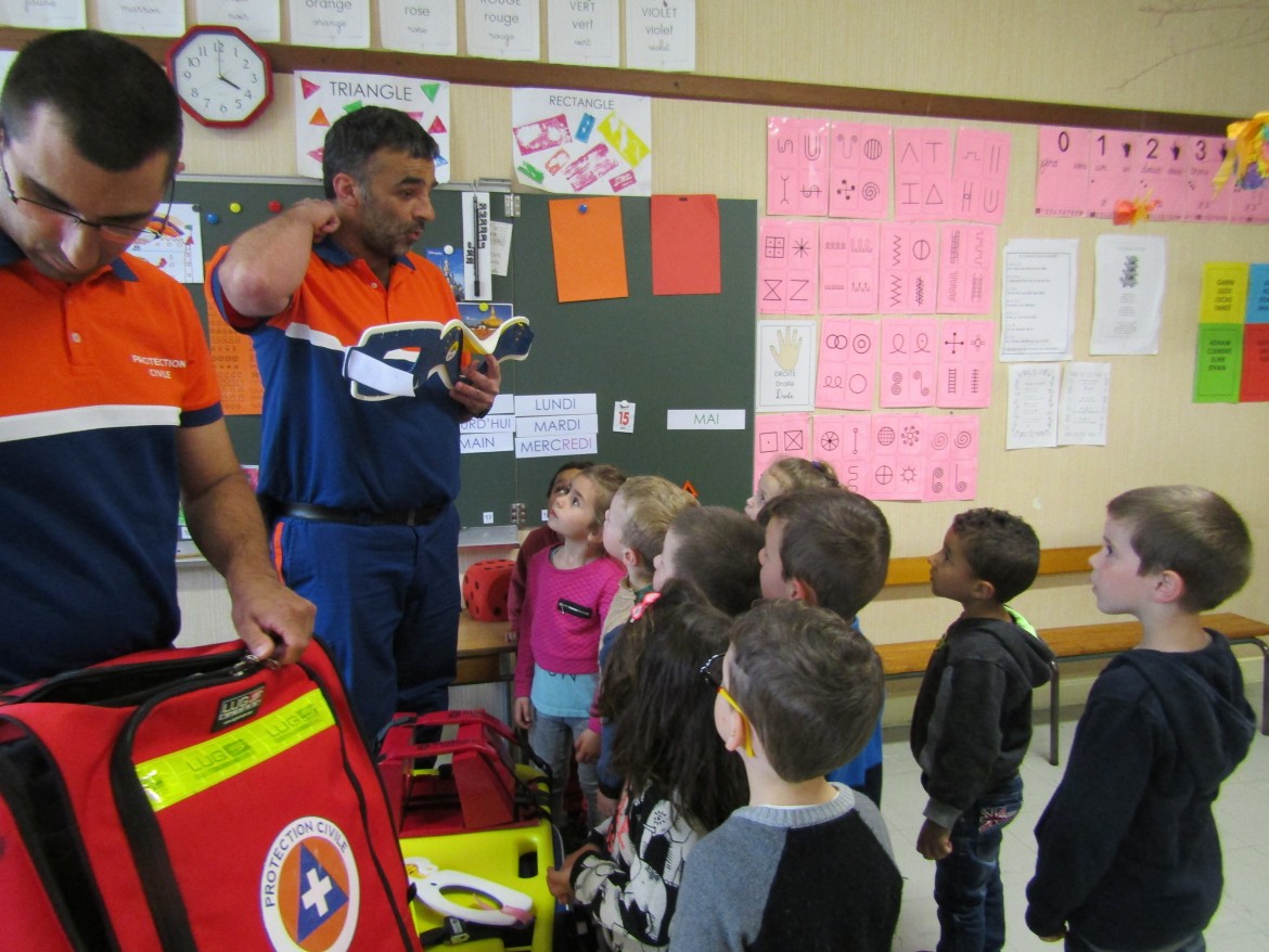 Les 15 et 24 Mai dernier, les Moyenne et Grande Sections ont ainsi pu découvrir l’intérieur d’une ambulance spécialement venue à Maurs pour eux. Les petits ont alors joué de la sirène, actionné le gyrophare, pris place dans le brancard. Les enfants ont également essayé les casques des agents de la PC, mais aussi se coucher dans la coquille de protection.