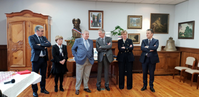 La visite a également fait un petit détour par l’Abbatiale pour admirer la relique du Saint-Césaire exceptionnellement sortie le même jour pour les besoins d’un film documentaire. L’inauguration s’est poursuivie dans la salle d’honneur de la Mairie où un vin d’honneur a été offert aux convives pour conclure cette après-midi.