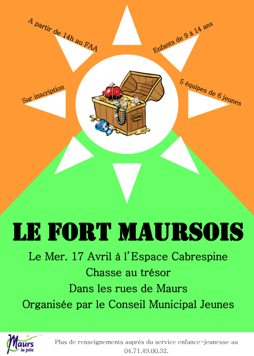 Le Conseil Municipal Jeunes de Maurs sera de la partie avec une grande chasse au trésor dans les rues de la cité médiévale pour les 9-14 ans. 5 équipes de 6 jeunes partiront à la recherche du trésor du ‘’Fort Maursois’’ mais le chemin vers ce dernier sera semé d’embuches. Ils devront ainsi redoubler de malice et d’intelligence pour le retrouver (jeu sur inscription).
