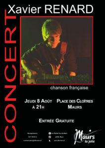 Le Jeudi 8 Août, à 21h place des Cloîtres, les Rendez-Vous de Maurs accueillent Xavier Renard et ses musiciens pour un concert de chansons de son cru.