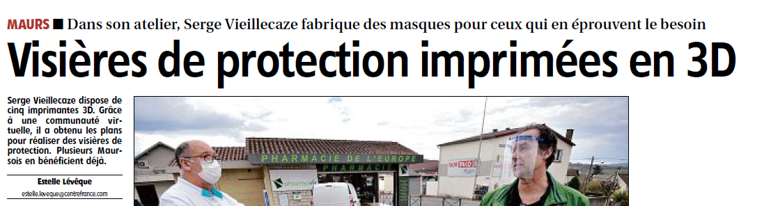 Dans les 2 dernières éditions de La Montagne, Maurs a été mis en avant avec les initiatives de deux entreprises locales en ces temps de pandémie. Mercredi 8 Avril, c’est l’initiative de W6 Desing et la fabrication de visières de protection en impression 3D. Aujourd’hui, c’est l’ouverture d’un drive par le GIE Châtaigneraie L’Éleveur Occitan qui fait l’objet d’un article dans le quotidien local.