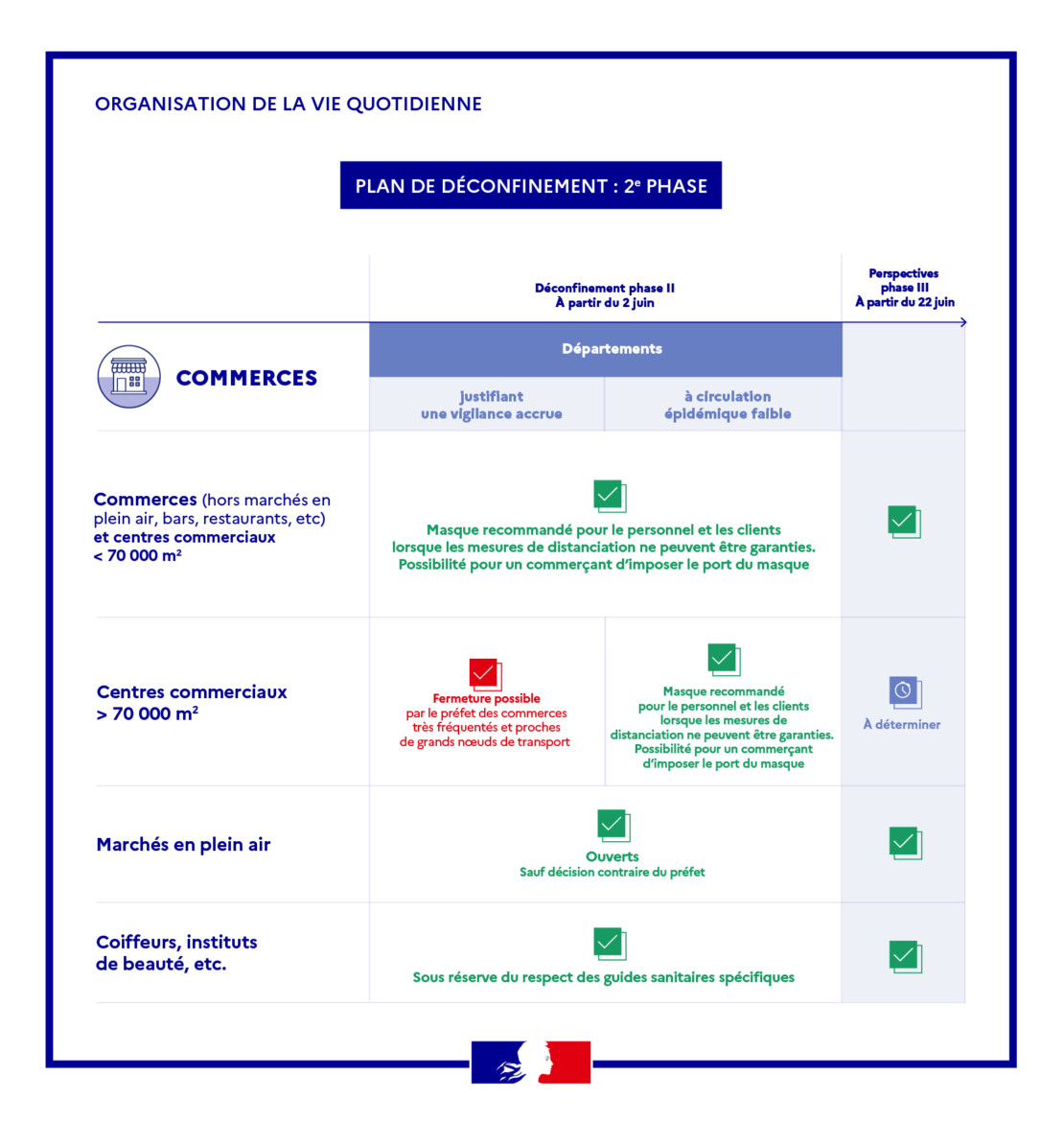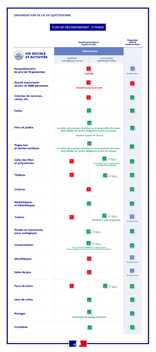 Après une première phase de déconfinement depuis le 11 Mai, le Premier Ministre Edouard PHILIPPE a annoncé la 2ème phase qui entre en vigueur à partir d’aujourd’hui, Mardi 2 Juin et jusqu’au 21 Juin.
