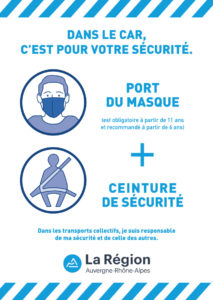 Le transport scolaire par la Région Auvergne-Rhône-Alpes sur le territoire de la Châtaigneraie Cantalienne reste opérationnel durant le confinement. Le port du masque est obligatoire à partir de 11 ans et recommandé pour les 6 – 10 ans. Pour le reste, les consignes sanitaires sont inchangées :