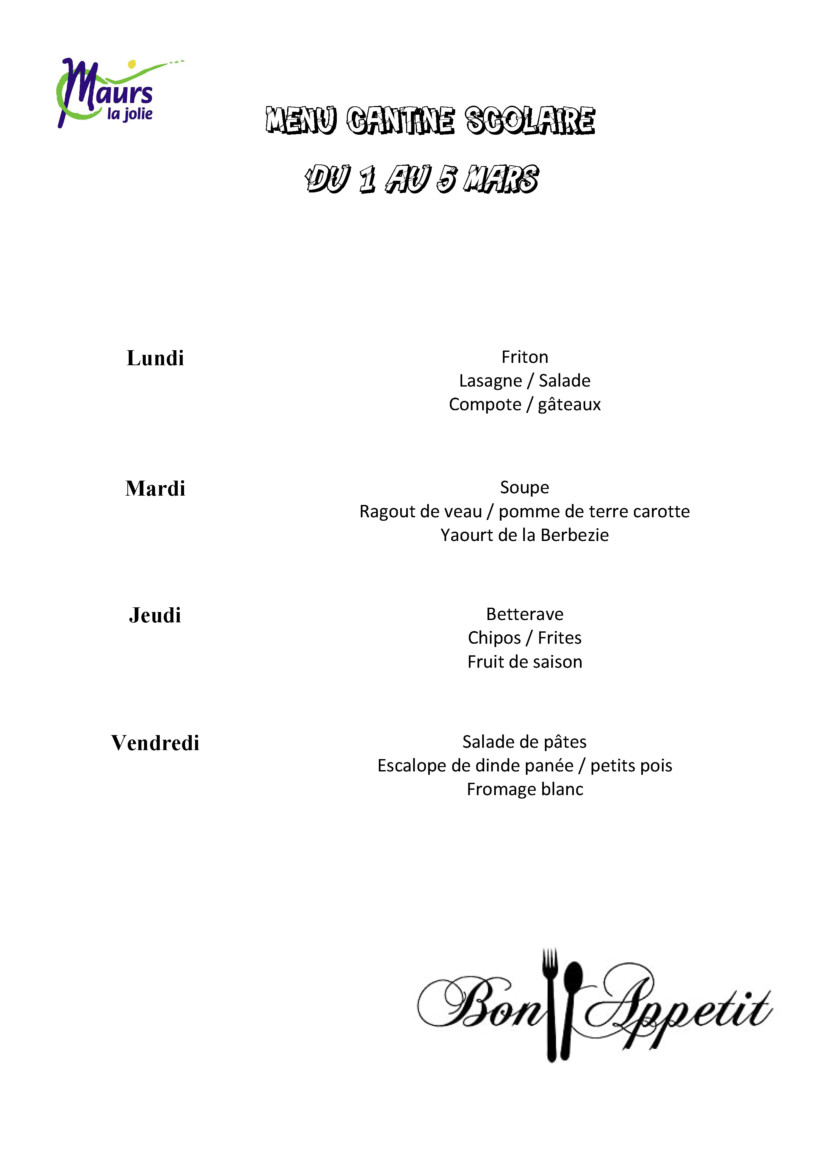 Après les vacances d’Hiver, retour à l’Ecole Denis Forestier pour les jeunes maursois ! Et découvrez les menus du restaurant scolaire pour cette rentrée !