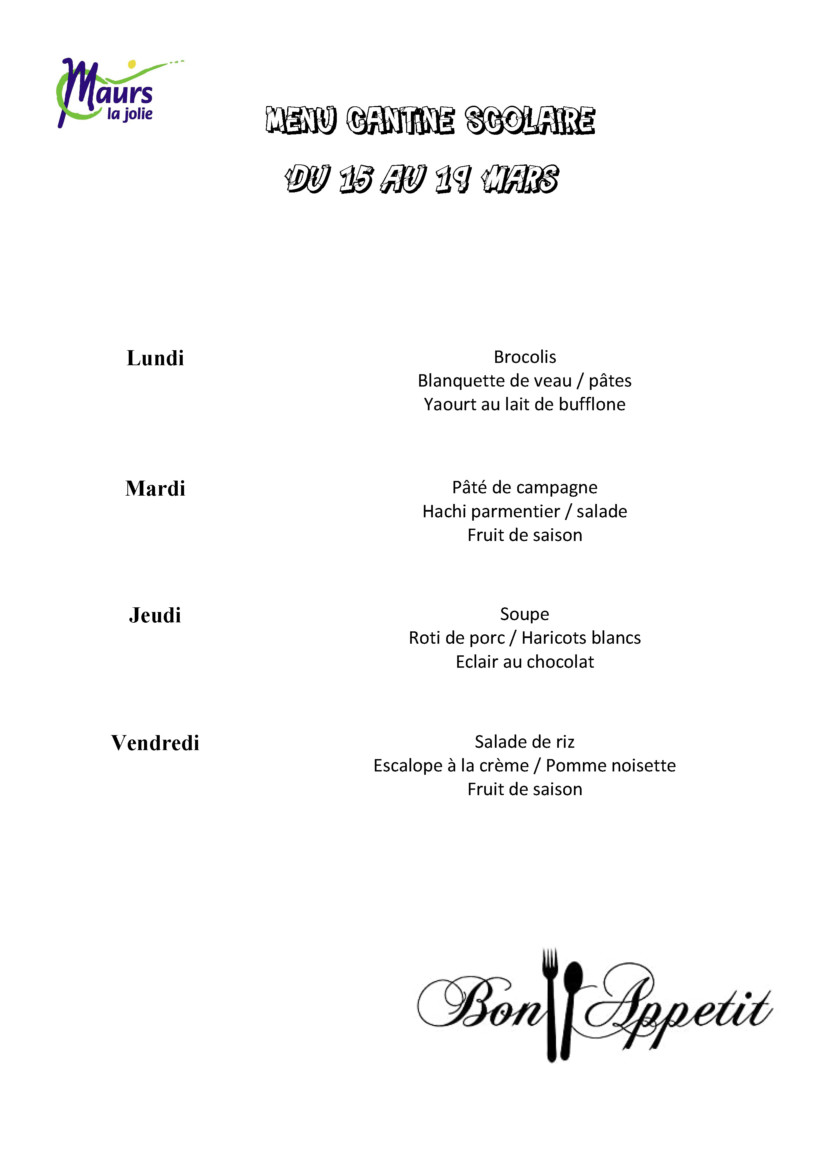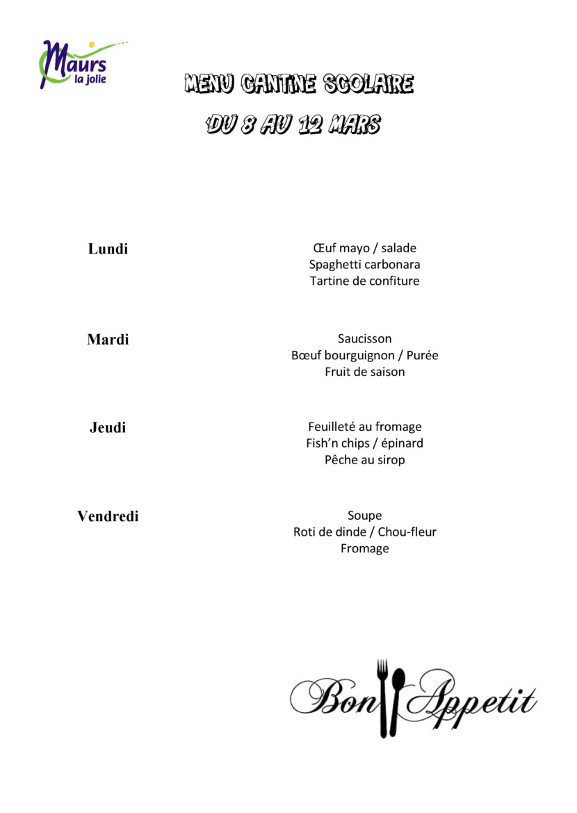 Consultez les menus du 08 au 19 Mars 2021