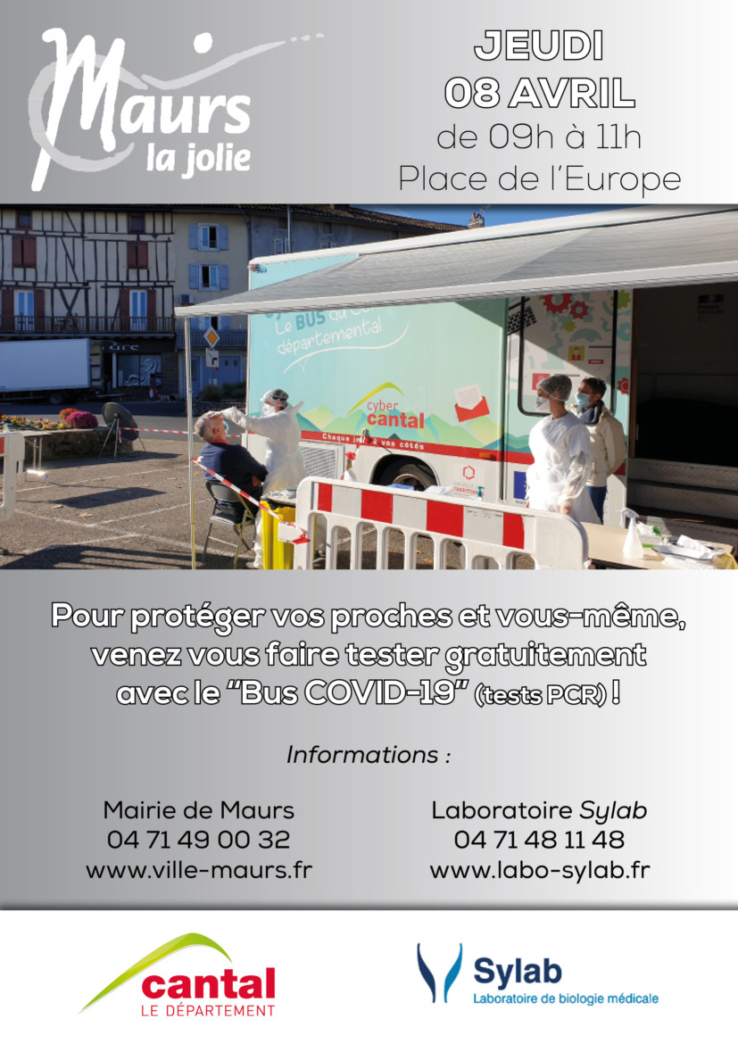 Le « Bus COVID-19 » s’installera de nouveau à Maurs le Jeudi 08 Avril 2021, de 09h à 11h, place de l’Europe