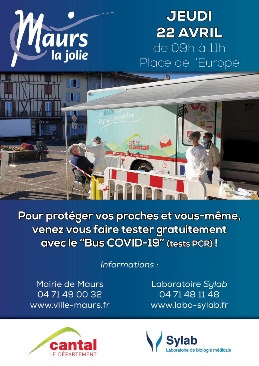 Le « Bus COVID-19 » s’installera de nouveau à Maurs le Jeudi 22 Avril 2021, de 09h à 11h, place de l’Europe