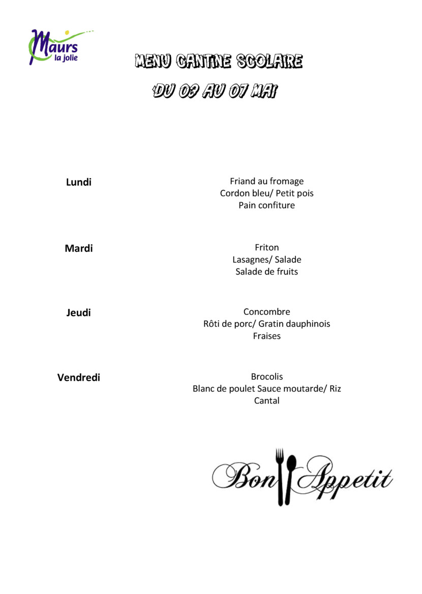 Consultez les menus du 26 Avril au 07 Mai 2021