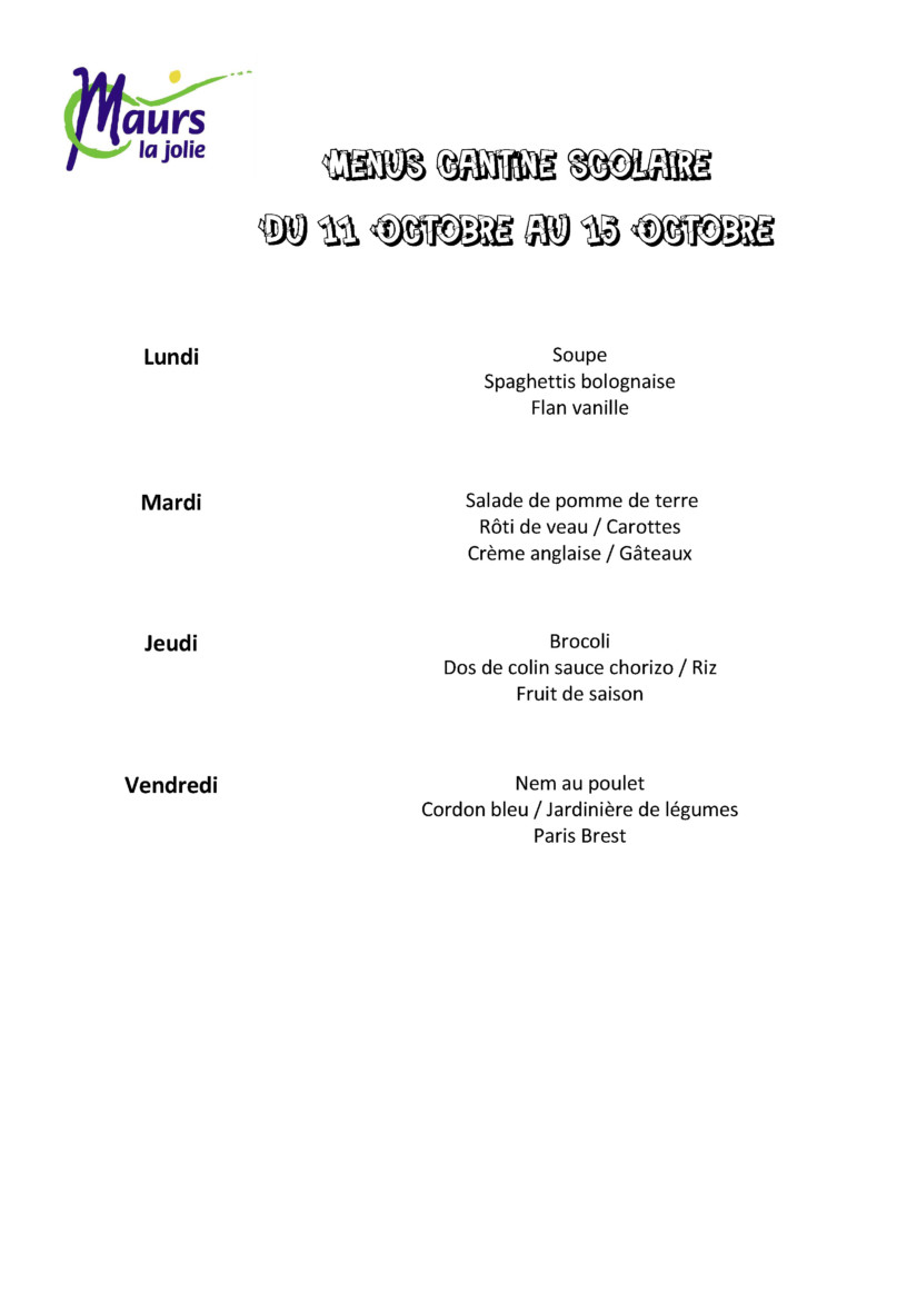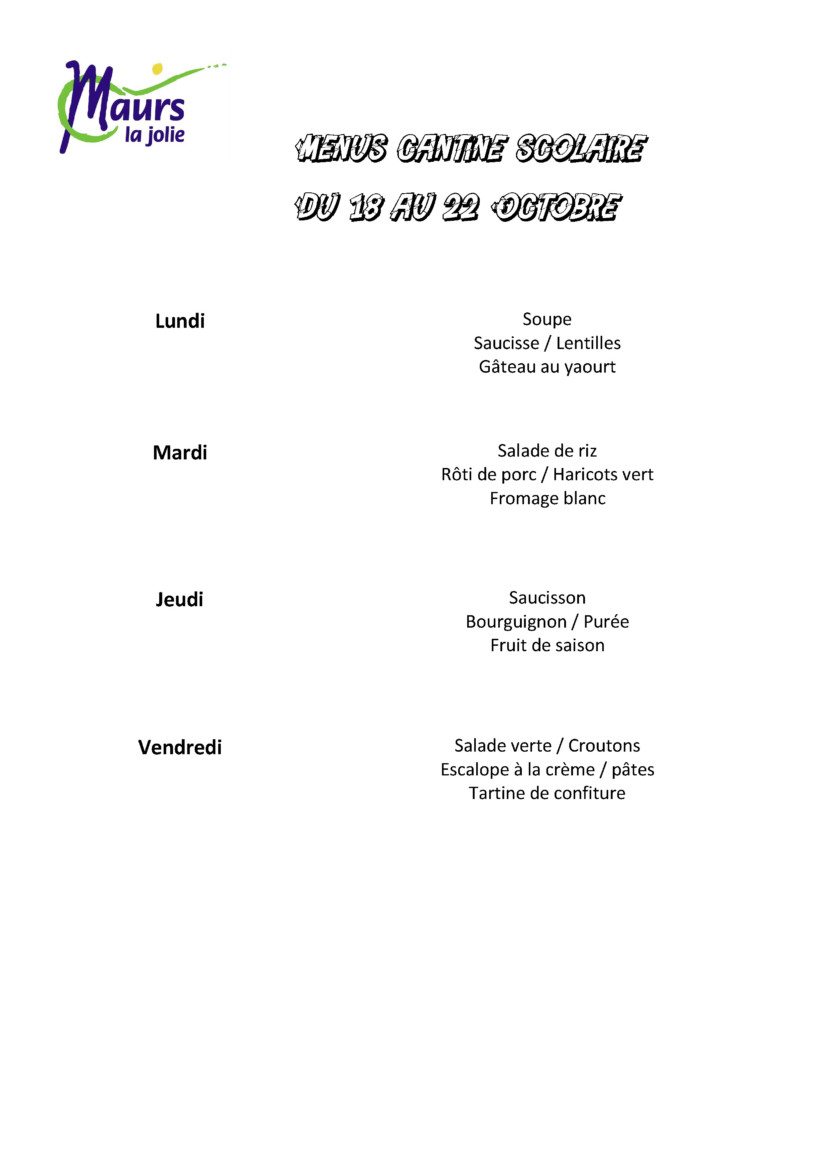 Retrouvez les menus de la cantine de l’Ecole Denis Forestier pour les 2 prochaines semaines !