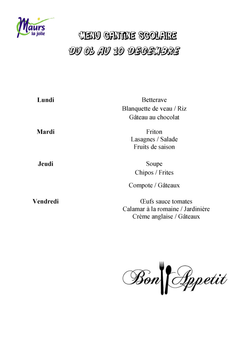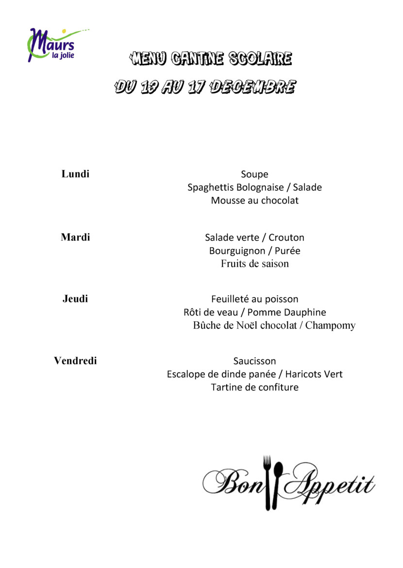 C’est bientôt les fêtes de fin d’années et les vacances qui vont avec ! Mais avant celles-ci, ils restent quelques jours de classe et de cantine …