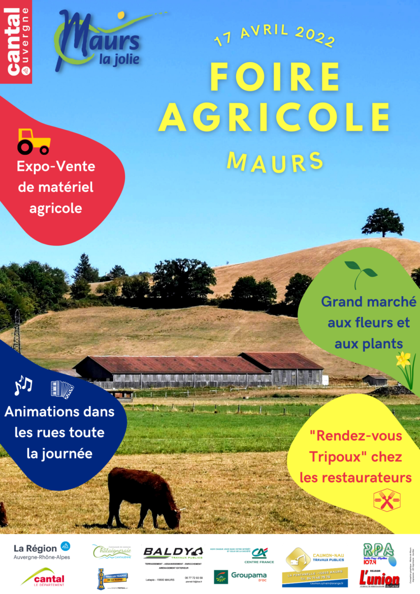 Après 2 ans d’absence, le Tour de Ville et le Centre-Bourg de Maurs accueilleront la traditionnelle Foire Agricole, toute la journée du dimanche 17 Avril.