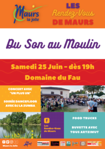 En prélude des animations estivales, Les Rendez-Vous de Maurs 2022, le Domaine du Fau fait sa ‘’Fête de la Musique’’ avec Du Son au Moulin Vendredi 25 Juin à partir de 19h.