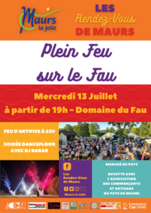 A partir de 19h, retrouvez un marché de pays en partenariat avec l’Association des Marchés de Pays du secteur de Maurs et une buvette tenue par l’Association des Commerçants et Artisans du pays de Maurs (ACAM).