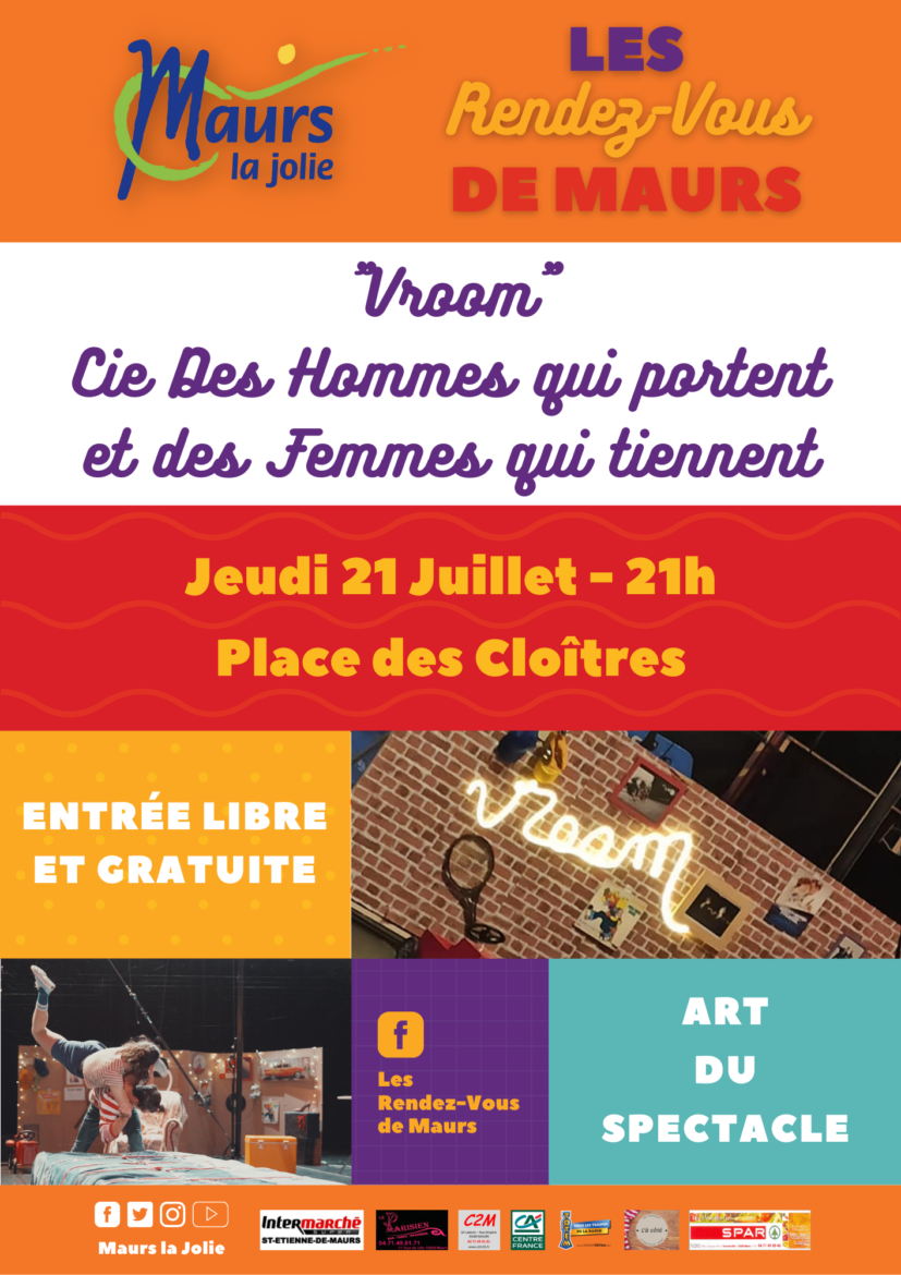 Cette semaine, Maurs vous invite à un voyage, de l’enfance à l’âge adulte, avec le spectacle « Vroom » de la compagnie Des hommes qui portent et des femmes qui tiennent. Rendez-vous ce Jeudi 21 Juillet à 21h, place des Cloîtres.