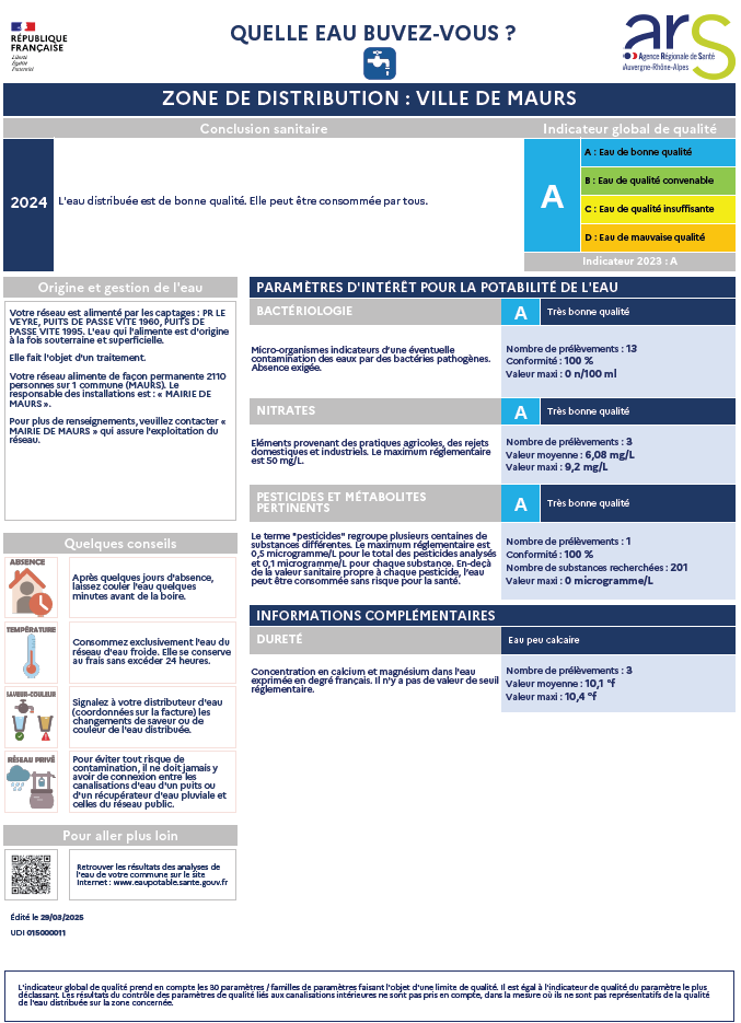 Télécharger les conclusions de l’ARS sur la qualité de l’eau à Maurs en 2024