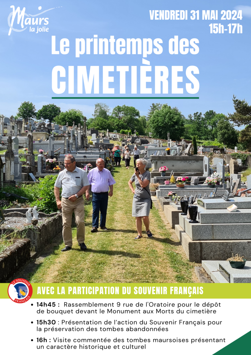 🌟Dans le cadre du printemps des cimetières, rendez-vous samedi 24 mai 2025 à partir de 14h au cimetière de Maurs en compagnie du Souvenir Français, de M. Bernard Gaston, conseiller municipal et de Maou la Poulido pour une visite guidée gratuite et y découvrir les personnalités maursoises inhumées.