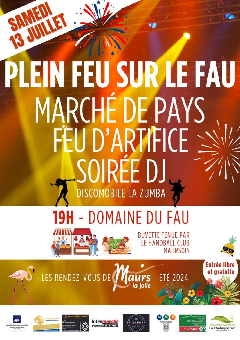 Ne manquez pas la soirée incontournable organisée par la municipalité « Plein feu sur le Fau » le samedi 13 juillet au Domaine du Fau !