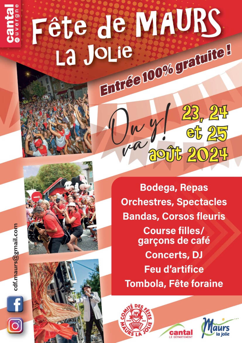 đ OrganisĂ© par le ComitĂ© des FĂȘtes de Maurs, lâĂ©vĂ©nement qui attire 15.000 personnes chaque annĂ©e vous rĂ©serve de trĂšs belles surprises ! Au programme notamment : bodĂ©ga, repas, orchestres, spectacles, bandas, corsos fleuris, course filles/garçons de cafĂ©, concerts, DJ, feu d’artifice, tombola, concours de pĂ©tanque & fĂȘte foraine ! đ€©đ„ł