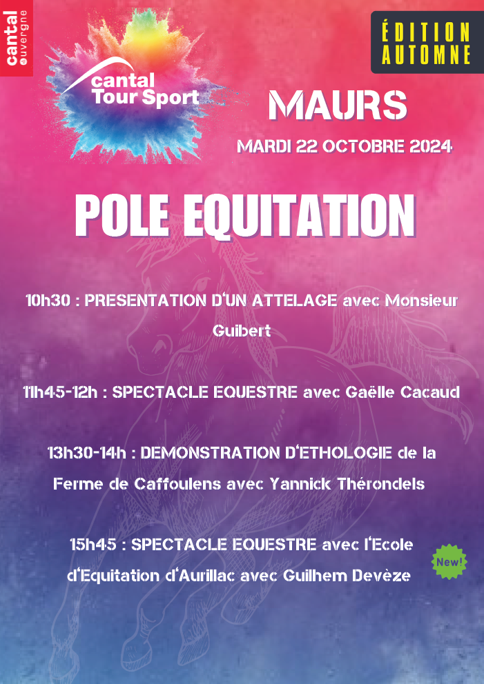 Après avoir fêté ses 10 ans tout au long du mois de juillet 2024, le Cantal Tour Sport est de retour pour son édition Automne à Maurs le mardi 22 octobre autour du monde du cheval !