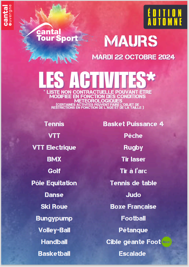 * Inscription en ligne : https://www.cantal.fr/cantaltoursport/