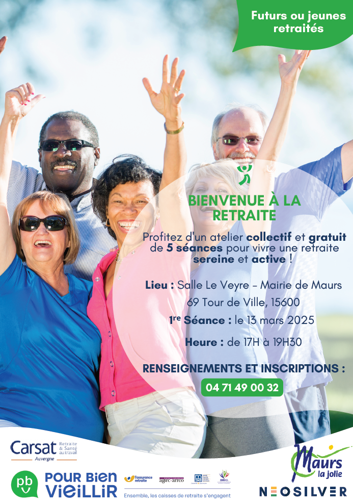 Inscrivez-vous vite Ă l’atelier collectif gratuit de 5 sĂ©ances « Bienvenue Ă la retraite » de Neosilver qui s’adresse aux futurs et jeunes retraitĂ©s pour :
