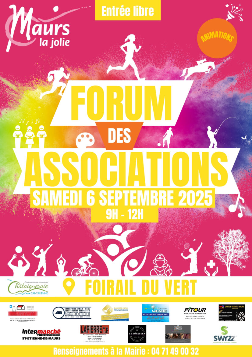👉 Le Forum des associations du Pays de Maurs organisé par la commune, en partenariat avec la Communauté de Communes de la Châtaigneraie se déroulera le samedi 6 septembre de 9h à 12h au Foirail du Vert !