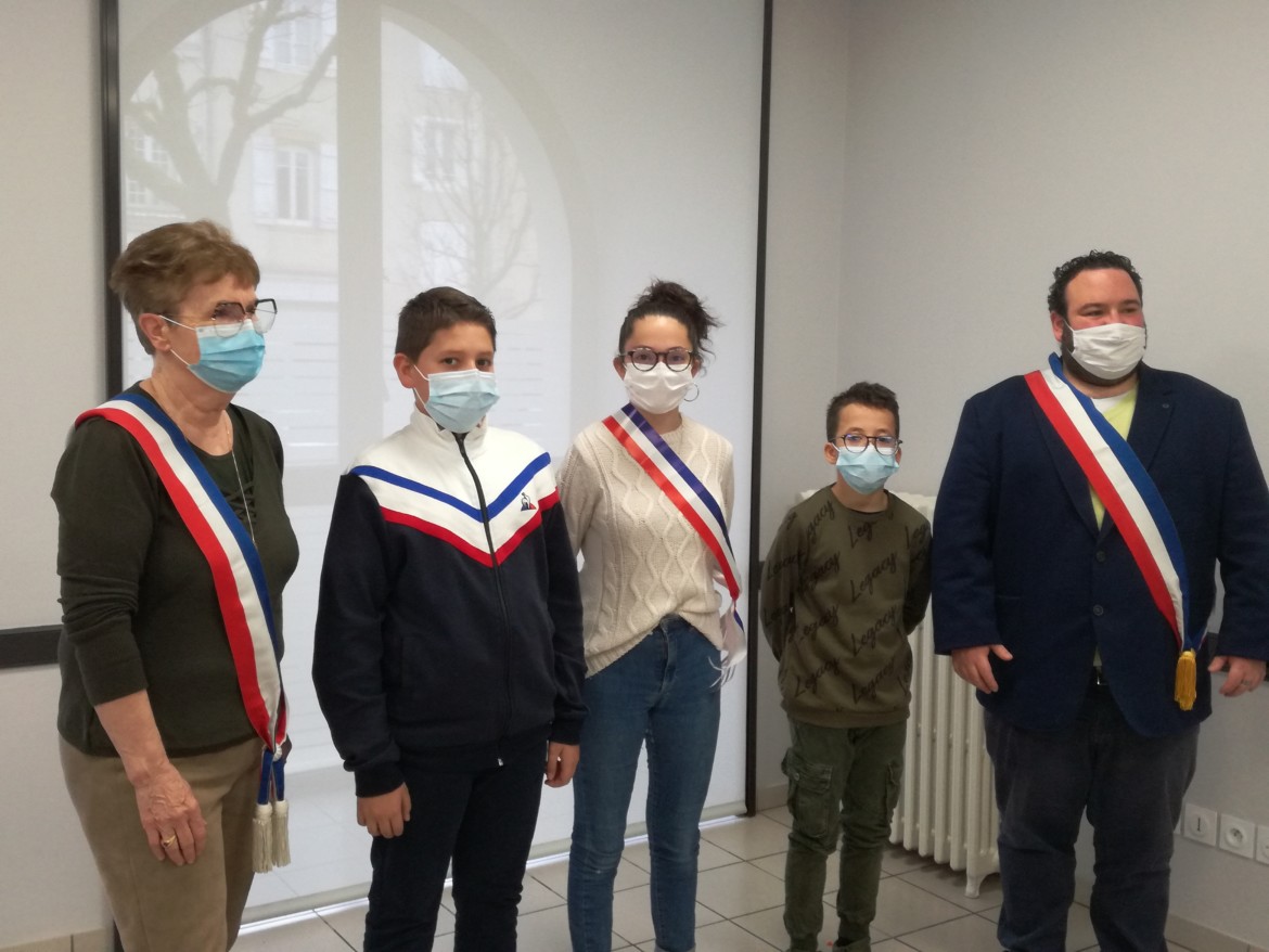 Lors de la première réunion, Sarah LOPEZ (au centre de la photo) a été élu maire du Conseil Jeunes. Elle est accompagnée de 2 adjoints : Mathéo DESSALES (à gauche) et Ruben SANTOS (à droite).