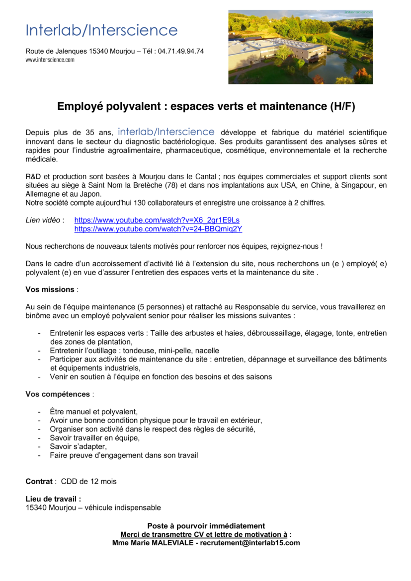 Des offres d'emploi sont disponibles sur Maurs et son bassin de vie !
