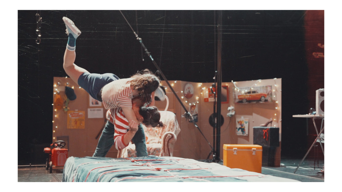 Sur leur portique, dans cet « univers suspendu », deux acrobates aériens proposent un témoignage de l’amour qu’ils portent à la vie, confidence de la confiance qu’ils se font et agitateur de rêves.